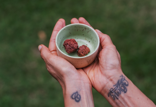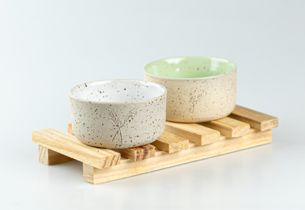 Cumbuquinhas de cerâmica artesanal para o preparo de sinergias. Acompanha pedrinhas vulcânicas.